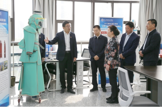 在参观完陕西省劳模、工匠职工创新工作室-梁晓哲智能制造创新工作室时,高洁主席对职工创新开展“N工结合”项目以及学校在服务地方经济取得的成绩予以高度肯定。