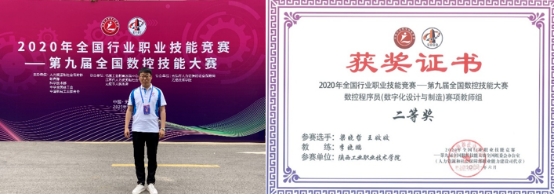 他率先垂范,亲自参加全国第九届数控技能大赛教师组的比赛,给团队年轻教师和学生做出榜样,荣获陕西省赛区教师组赛项冠军,代表陕西省进入全国总决赛,并拿到了全国二等奖的成绩。践行了“匠心育人,师先行”的团队理念。截至目前,获评“陕西省技术能手”“国家级技能大赛裁判”等荣誉称号,按照相关文件规定,晋升高级技师。