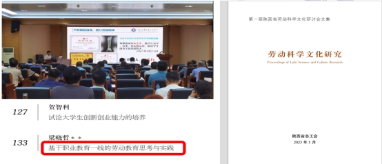 2023年受邀参与陕西省科学劳动研讨活动发表主题演讲,并撰写《基于职业教育一线的劳动教育思考与实践》发表在陕西省总工会创办的《劳动科学文集》。