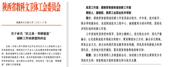 2022年梁晓哲同志被陕西省委、省政府授予“陕西省先进工作者”光荣称号,更加明确身上所承担的时代责任。与此同时,“梁晓哲智能制造创新工作室”也被陕西省教科文卫体工会认定为省级劳模、工匠人才创新工作室。