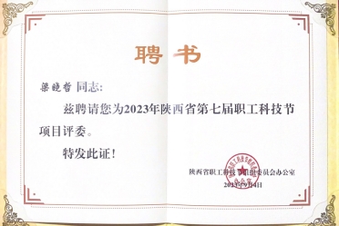 2023年受邀担任陕西省第七届职工科技节的项目评审工作,为陕西省职工创新的发展贡献力量。