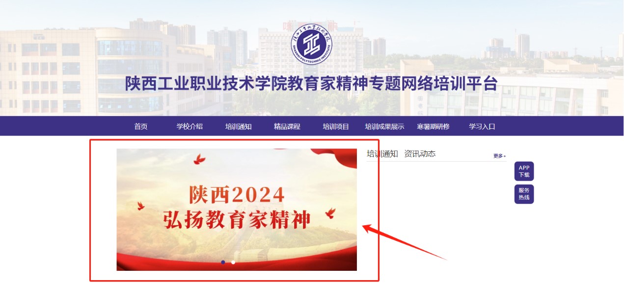 1.在浏览器中打开陕西工业职业技术学院弘扬教育家精神专题网络培训平台首页https://www.ttcdw.cn/h/spec/sxgyjyj/;
