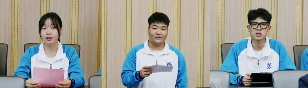 学生代表发言环节,化工与纺织服装学院化工2103班王家瑶、信息工程学院本科计科2211班袁创、机械工程学院机制1906班马山林分别从学校教师的悉心培养及自身专业发展、黄大年“心有大我、至诚报国”精神的理解、作为学生对黄大年精神的践行等方面作了分享。材料工程学院模具2102班何心毅用爱国、努力、感恩三个关键词谈了自己对黄大年个人事迹的学习感悟。她表示作为青年学子,应传承爱国主义精神,在日常的学习中积极践行爱国情怀。认真听讲每一节思政课,积极参加主题班会,主动投身志愿服务,在意识形态斗争中站稳立场;充分利用良好的学习条件投身实训课程,积极参加技能大赛,在有限的在校时间里锻炼自己的能力,提高自己的认知和眼界,主动向老师请教,提高自身专业技能,努力成为对国家和社会有用的人;应当心怀感恩,感谢老师的谆谆教诲,感恩党,感恩国家给予我们幸福安康的生活,感恩父母的养育。然后化感恩为力量,将内心的感恩之情化作不断前行的奋进力量,在未来的道路上扛起青年学子的担当。