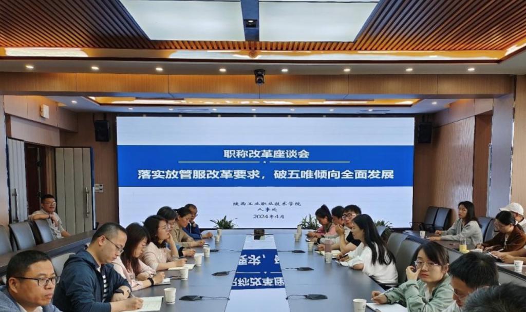 为深入贯彻落实人社部、教育部、陕西省人社厅、教育厅关于深化高等学校教师职称制度改革的文件要求,进一步推进学校教育评价机制改革,建立完善更加公平、合理、科学的职称评审制度,更好的发挥职称评审激励导向作用,激发广大教师干事创业积极性,切实推动学校高质量发展,4月19日上午,学校在崇文楼九楼第一会议室组织召开职称改革座谈会,各二级学院(部)教师代表等28人参加了座谈会,会议由人事处处长殷锋社主持。